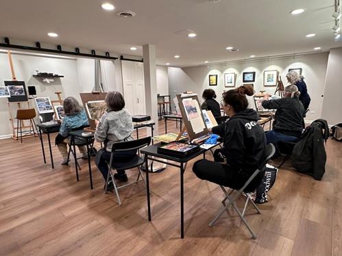 Classroom is located in Geneva, IL in the basement level. Stairs are required to enter the space. Tabletop Easels, chairs, water and beverages will be supplied.