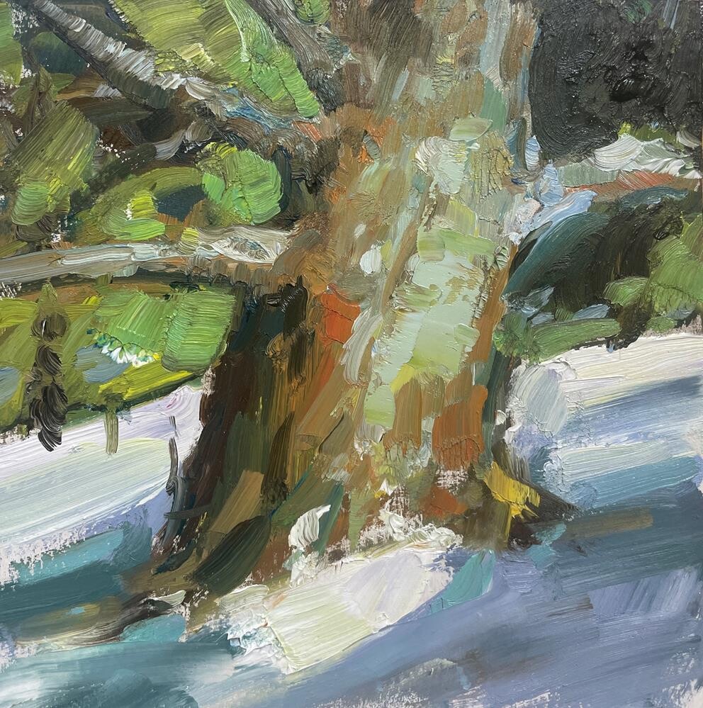 One of my favorite subjects to paint are trees. I am working on several right now. This one is a small 6x6. It is on a wood cradled panel. It can sit directly on a shelf and no frame is needed. One of my favorite subjects to paint are trees. I am working on several right now. This one is a small 6x6. It is on a wood cradled panel. It can sit directly on a shelf and no frame is needed. |
