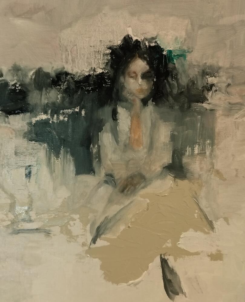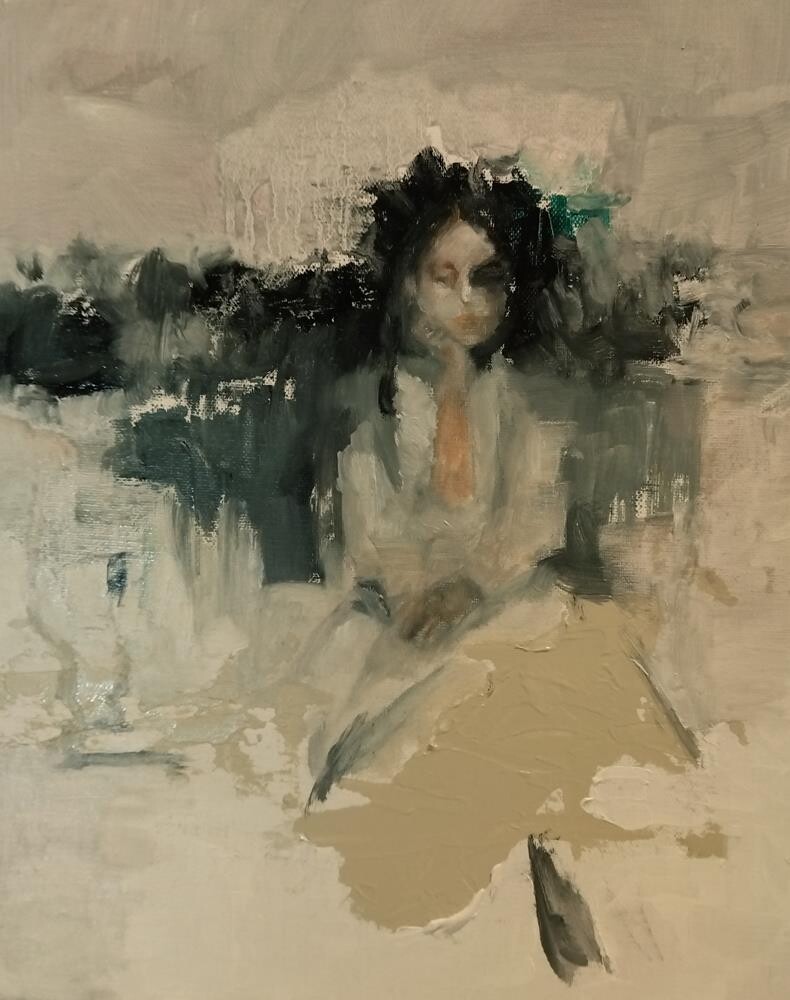 Media: mixed media, mostly oil, on canvas panel
