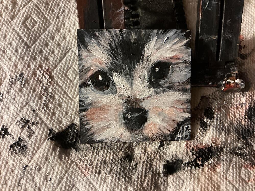 This small painting comes with a wooden display stand…perfect on your desk at work..nightstand….just about fits anywhere! This small painting comes with a wooden display stand…perfect on your desk at work..nightstand….just about fits anywhere! |