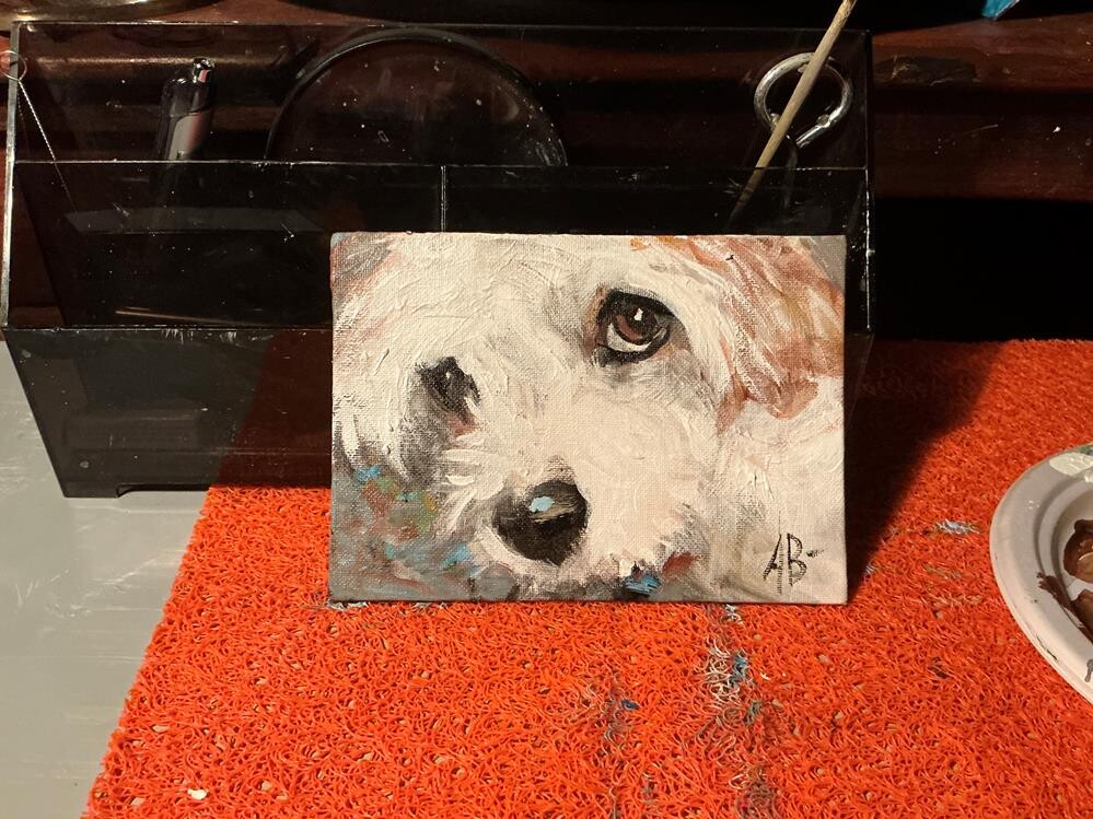 Loved painting this little one today…most likely learned to watch how the day ends living with an elderly couple…who love sunsets too! Loved painting this little one today…most likely learned to watch how the day ends living with an elderly couple…who love sunsets too! |