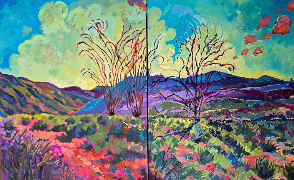 As much as I would like these two to stay together, you may choose one or the other if you like. Each is $250, open for a reasonable offer 😊 This diptych, with each panel measuring 16 x 20 inches, captures the Borrego area in California.