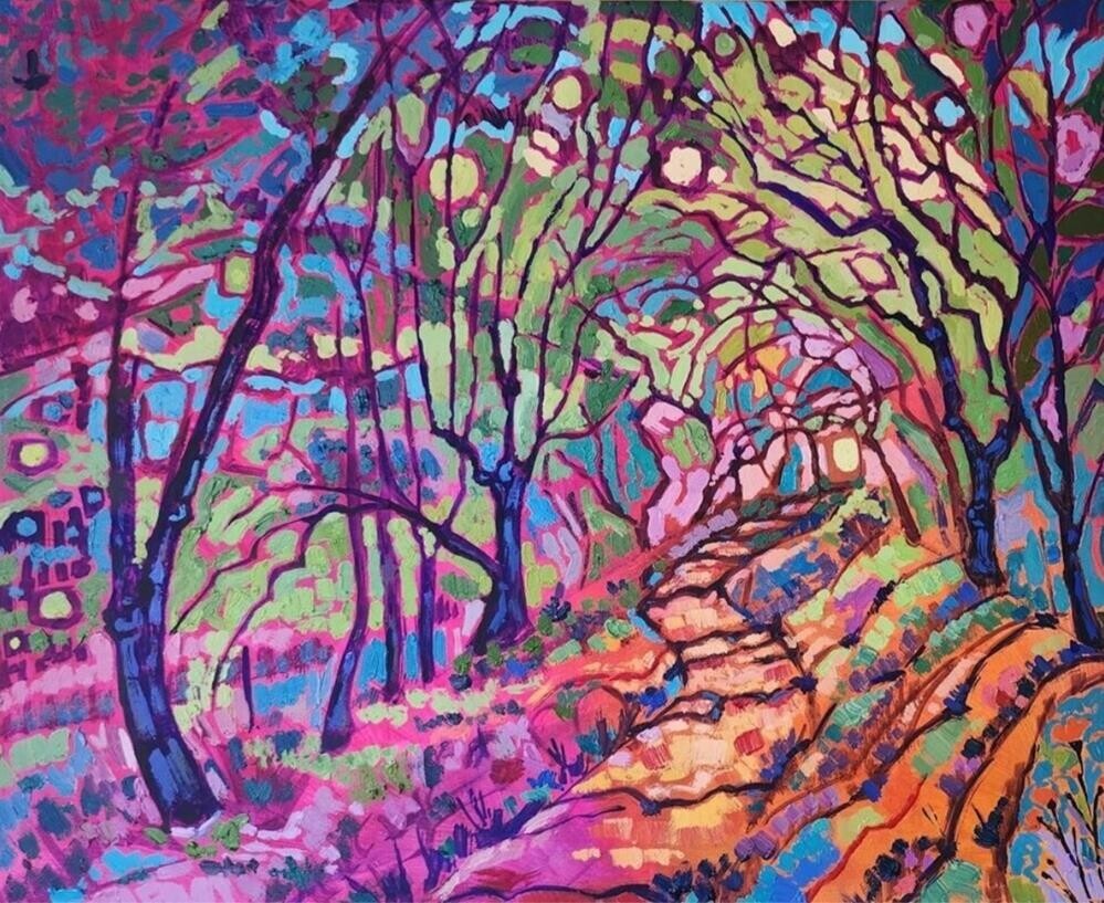 A small trail near the lake painted in full palette! ---- This is an original work of art by Bhavna Misra. Painted in bold brushwork in her signature style.