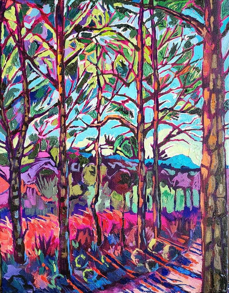 A walk near Redwood forest area inspired this small painting. ---- This is an original work of art by Bhavna Misra. Painted in bold brushwork in her signature style.