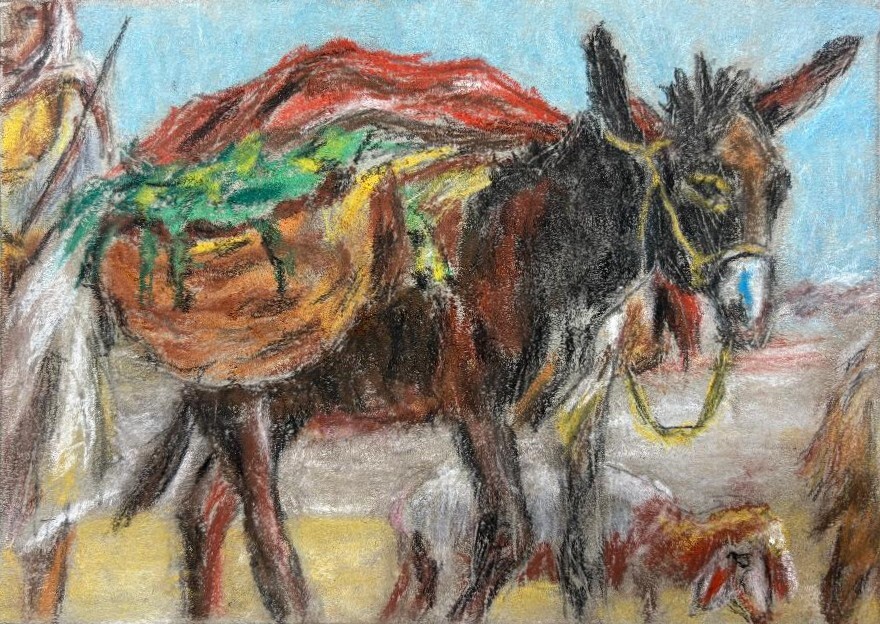 Thought this little donkey was sweet. Used both charcoal and pastel. Comes matted. Thought this little donkey was sweet. Used both charcoal and pastel. Comes matted. |
