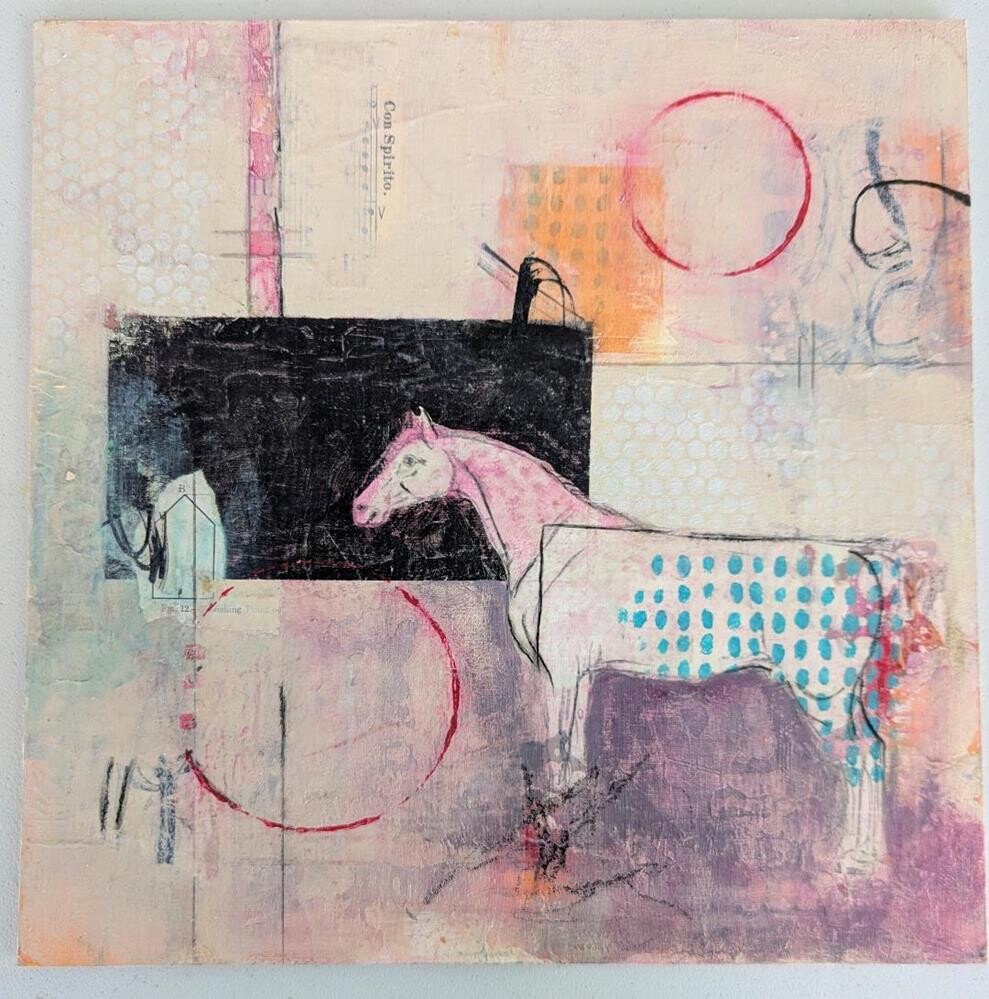 Mixed media and collage on wood panel finished with cold wax Mixed media and collage on wood panel finished with cold wax |