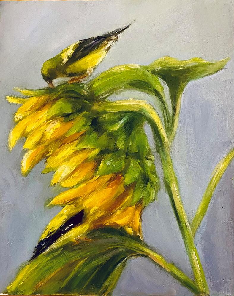 Chickadees on a sunflower Chickadees on a sunflower |