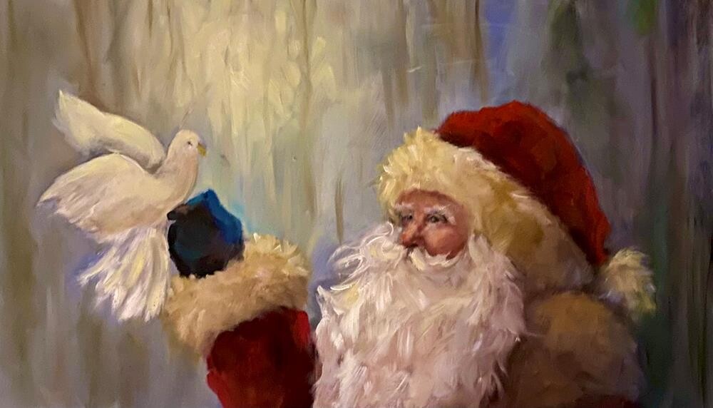 Snowy scene of Santa with dove. Dreaming of a peaceful world! Snowy scene of Santa with dove. Dreaming of a peaceful world! |
