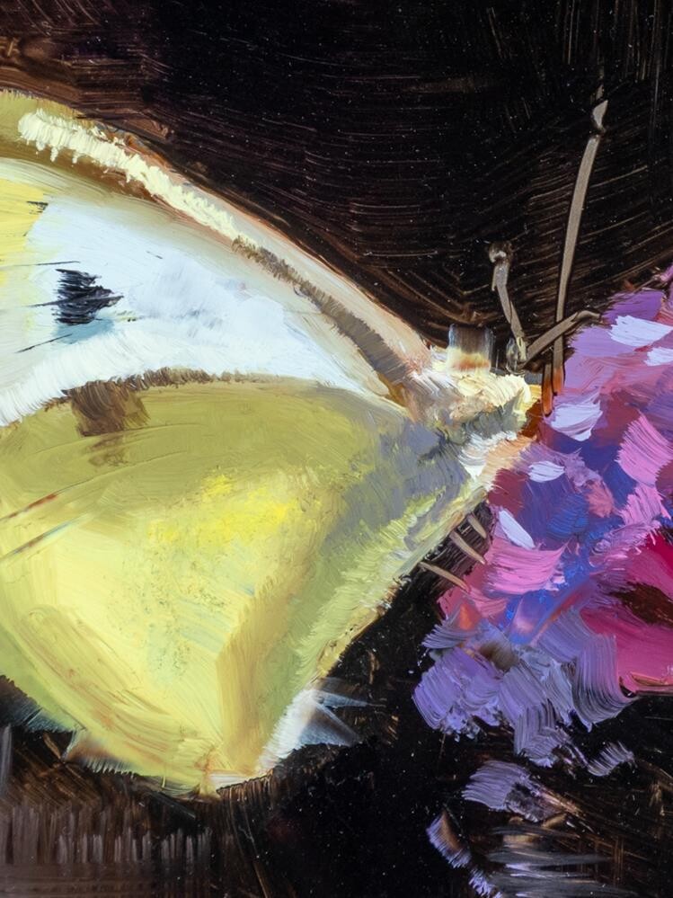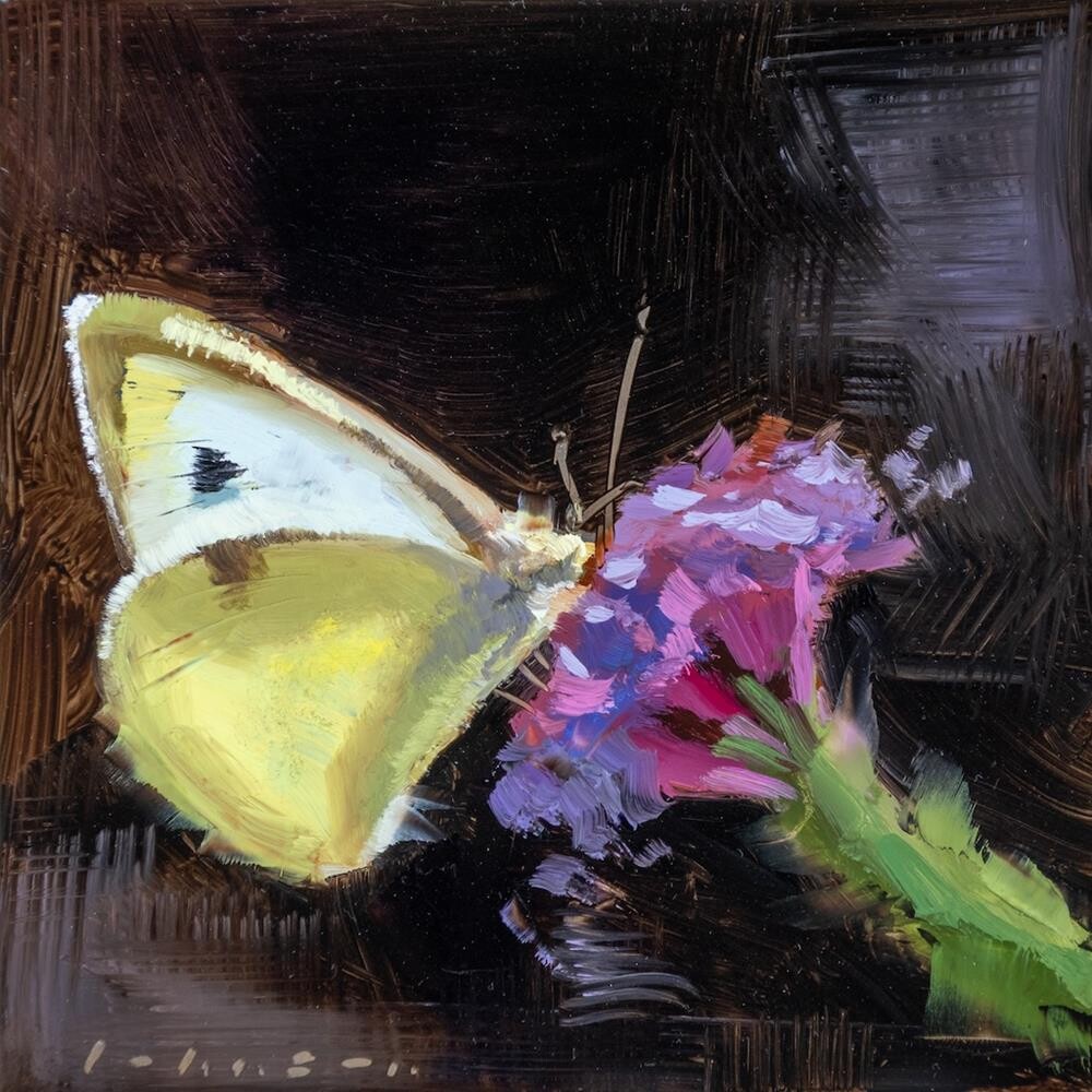 I love the way the sun backlit this butterfly in our garden, turning the wings translucent, and revealing the shadow of the butterfly’s body through the surface of the front wing. Hopefully I did a decent job of capturing that effect! This was my first time painting on an aluminium panel, which was an interesting challenge as it has a much smoother surface than I'm used to so the paint slides around a lot! I love the way the sun backlit this butterfly in our garden, turning the wings translucent, and revealing the shadow of the butterfly’s body through the surface of the front wing. Hopefully I did a decent job of capturing that effect! This was my first time painting on an aluminium panel, which was an interesting challenge as it has a much smoother surface than I'm used to so the paint slides around a lot! |