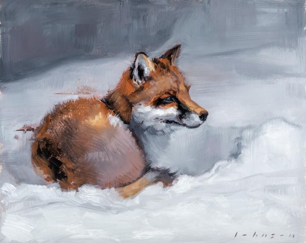 We had some heavy snow recently, and spotted two foxes playing in our neighbour's garden in the middle of the night. Then when I got up in the morning, one of them had dug a hole in the snow and curled up in it. I grabbed the camera and managed to take a few photos through the kitchen window before he moved on to find somewhere warmer to sleep. This was painted using the "Zorn palette" of just red, yellow, black, and white. For more details, take a look at my Instagram reel. We had some heavy snow recently, and spotted two foxes playing in our neighbour's garden in the middle of the night. Then when I got up in the morning, one of them had dug a hole in the snow and curled up in it. I grabbed the camera and managed to take a few photos through the kitchen window before he moved on to find somewhere warmer to sleep. This was painted using the "Zorn palette" of just red, yellow, black, and white. For more details, take a look at my Instagram reel. |