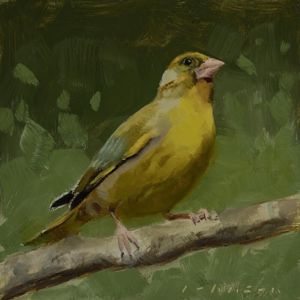 We're lucky enough to get regular Greenfinch visitors to our garden, and they tend to just sit at the feeders for long stretches, so it's nice when I can get a picture of one on a branch, between meals!