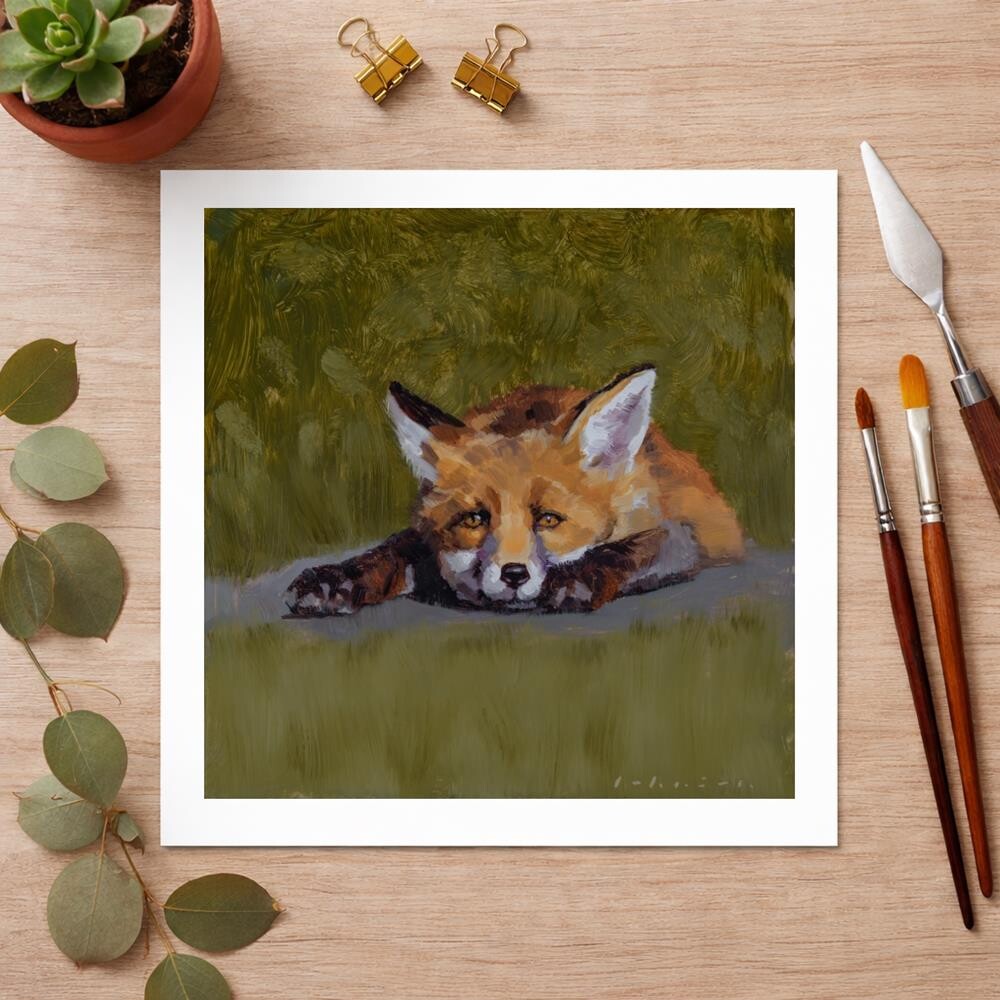 Second in a series of fox paintings, painted from a reference photo I took from our window while the fox cubs were playing in our neighbour's garden!The print includes a 0.5" white border. Second in a series of fox paintings, painted from a reference photo I took from our window while the fox cubs were playing in our neighbour's garden!The print includes a 0.5" white border. |