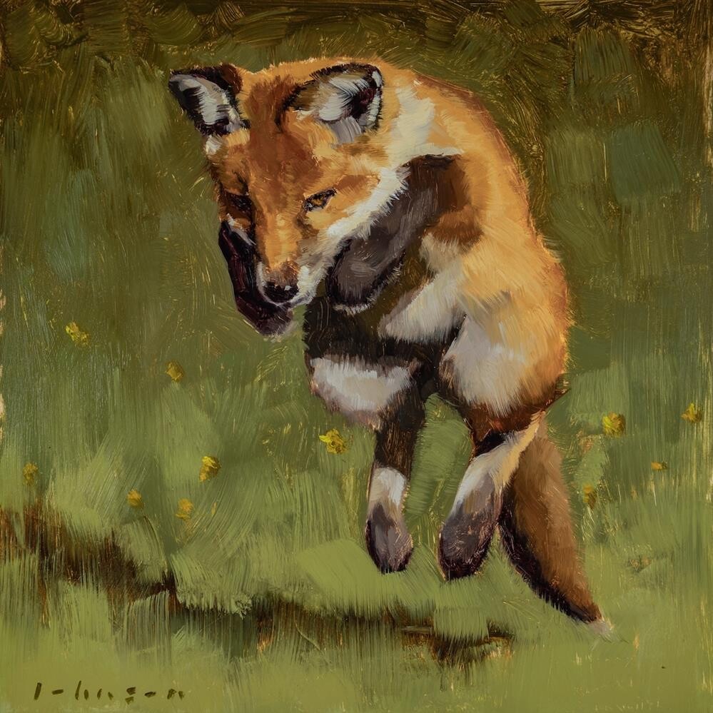 First in a series of fox paintings, painted from a reference photo I took from our window while the fox cubs were playing in our neighbour's garden! First in a series of fox paintings, painted from a reference photo I took from our window while the fox cubs were playing in our neighbour's garden! |