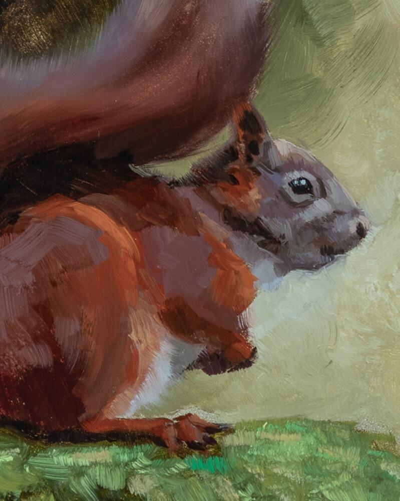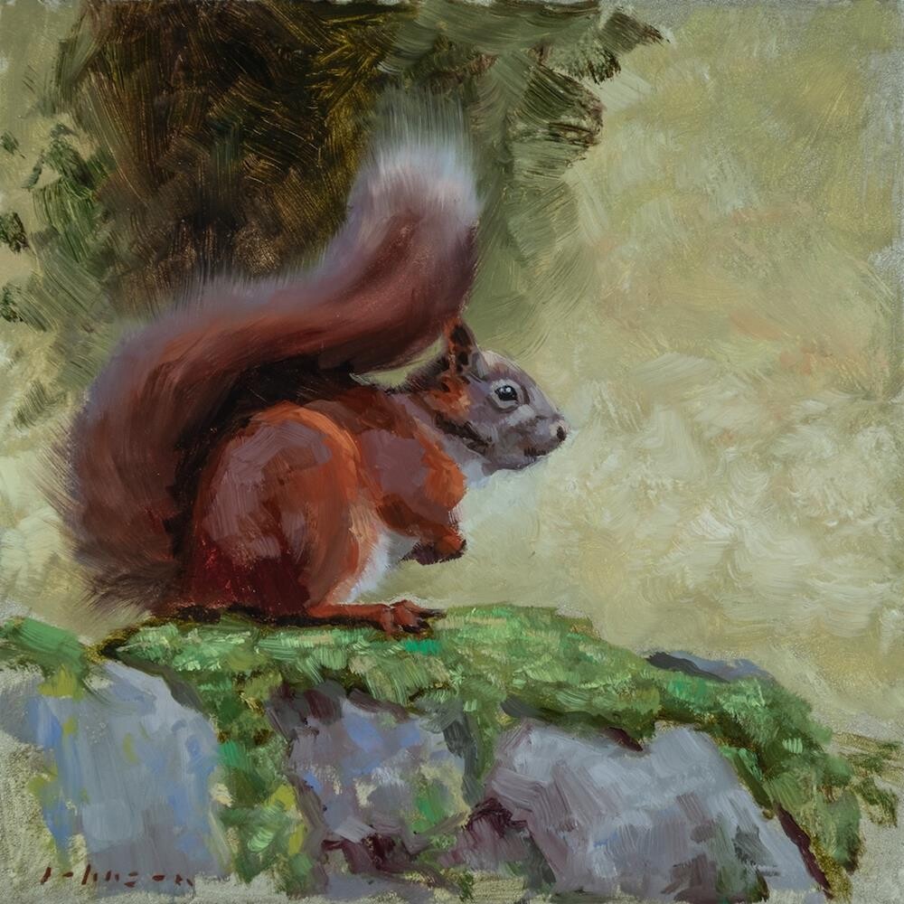 I grew up near Formby pinewoods, where there used to be an abundance of red squirrels. Sadly there are very few red squirrels left in Formby these days due to the arrival of squirrel pox around 2007, and the last two times we've visited, we haven't seen a single one. The reference for this painting was taken in the Yorkshire Dales at a red squirrel hide near Hawes, where I did a photography workshop with Going Digital. I grew up near Formby pinewoods, where there used to be an abundance of red squirrels. Sadly there are very few red squirrels left in Formby these days due to the arrival of squirrel pox around 2007, and the last two times we've visited, we haven't seen a single one. The reference for this painting was taken in the Yorkshire Dales at a red squirrel hide near Hawes, where I did a photography workshop with Going Digital. |