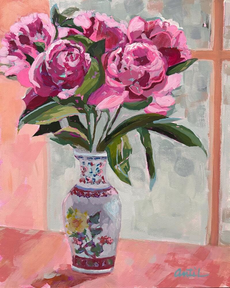 I loved painting the hint of details of this vase, and the ever challenging peony blossoms. So happy with the end result. Painted on flat ampersand gessobord. Unframed, but available on request. I loved painting the hint of details of this vase, and the ever challenging peony blossoms. So happy with the end result. Painted on flat ampersand gessobord. Unframed, but available on request. |