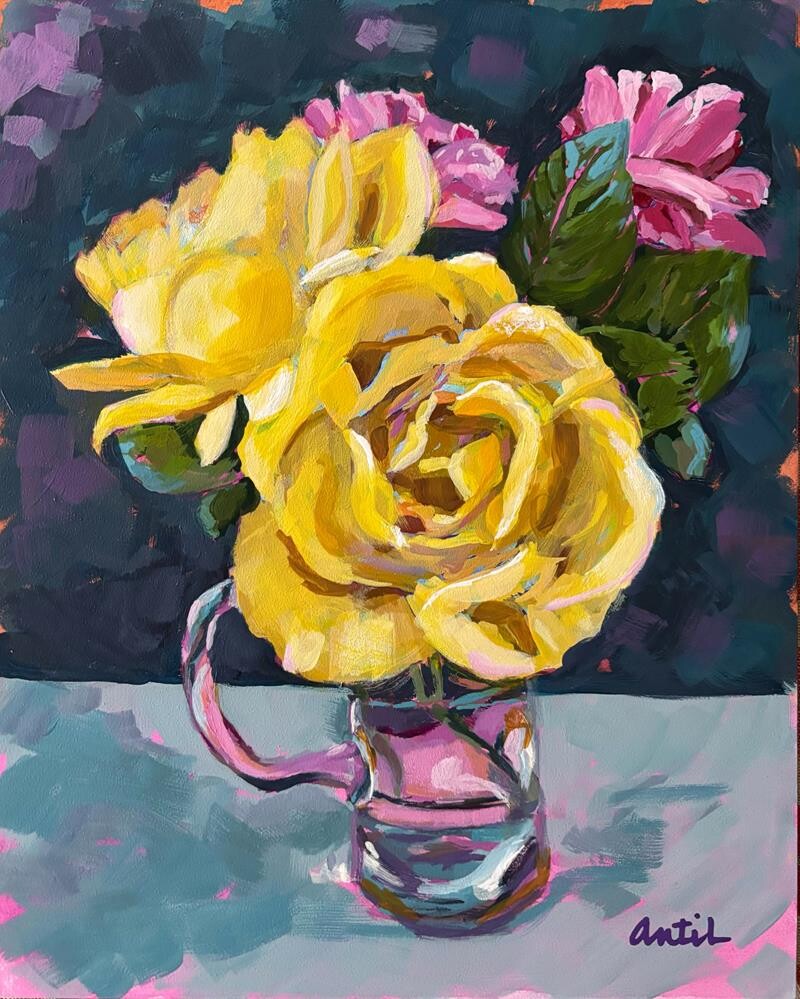 This was painted on a cradled panel with edges painted and ready for hanging. Thanks to Christy Sullivan for sharing the inspiring photo reference. |