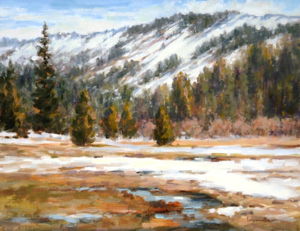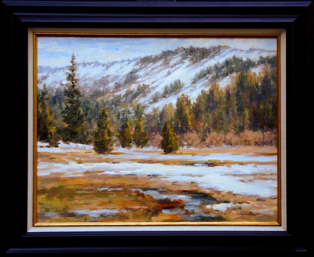 Prelude to Spring Late in the winter you can see changes in the weather and scenery as you drive by meadows and mountains with an early thaw just starting to take place. This meadow was right beside the road and I had painted it in the spring with lots of very green trees and warm golden grass. It looked like a totally different place when I stopped to observe the interesting paths in the snow caused by the recently melted snow water. This is an original oil painting, painted by me, DJ Lanzendorfer, it is 14" x 18" oil paint on linen canvas, it is unframed with free Shipping included. This painting will fit a ready made frame. Although this painting is unframed, I have included an image of it in a frame so you can see how it will look. See a larger image of this painting at www.djlanzendorferfineart.com VIP INSIDERS EMAIL NEWSLETTER - Join my insiders mailing list and receive a VIP newsletter - get a first look at what's new and happening in the art world. https://djlanzendorferfineart.com/email-newsletter FOREIGN PURCHASES – We are happy to accommodate foreign sales whenever possible. Please contact us for availability and exact shipping costs. Sorry, no free shipping outside the continental USA. Prelude to Spring Late in the winter you can see changes in the weather and scenery as you drive by meadows and mountains with an early thaw just starting to take place. This meadow was right beside the road and I had painted it in the spring with lots of very green trees and warm golden grass. It looked like a totally different place when I stopped to observe the interesting paths in the snow caused by the recently melted snow water. This is an original oil painting, painted by me, DJ Lanzendorfer, it is 14" x 18" oil paint on linen canvas, it is unframed with free Shipping included. This painting will fit a ready made frame. Although this painting is unframed, I have included an image of it in a frame so you can see how it will look. See a larger image of this painting at www.djlanzendorferfineart.com VIP INSIDERS EMAIL NEWSLETTER - Join my insiders mailing list and receive a VIP newsletter - get a first look at what's new and happening in the art world. https://djlanzendorferfineart.com/email-newsletter FOREIGN PURCHASES – We are happy to accommodate foreign sales whenever possible. Please contact us for availability and exact shipping costs. Sorry, no free shipping outside the continental USA. |