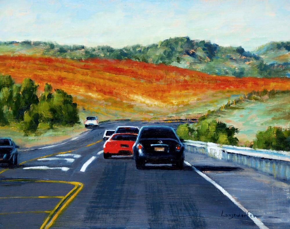 SENIC ROUTE I was traveling through Napa wine country on Thanksgiving day the winter sun was so bright almost everything you looked at prickled with light. I also noticed the bright light saturated the scene with deep color – the grape vines were so red, the hill so blue green and even the road looked rich in color. I could not wait to paint this scene and I hope you enjoy it as much as I did painting it. This is an original oil painting, painted by me, DJ Lanzendorfer, 11” x 14”, oil on linen and is unframed with free shipping included. Although this painting is unframed, I have included an image of it in a frame so you can see how it will look. See a larger image of this painting at www.djlanzendorferfineart.com VIP INSIDERS EMAIL NEWSLETTER - Join my insiders mailing list and receive a VIP newsletter - get a first look at what's new and happening in the art world. https://djlanzendorferfineart.com/email-newsletter FOREIGN PURCHASES – We are happy to accommodate foreign sales whenever possible. Please contact us for availability and exact shipping costs. Sorry, no free shipping outside the continental USA.