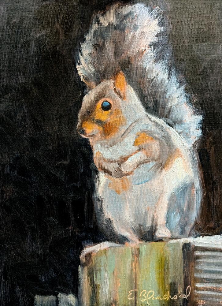 This is not actually Peanut the squirrel, but it is painted in memory of him. Photo credit to Timothy This is not actually Peanut the squirrel, but it is painted in memory of him. Photo credit to Timothy |