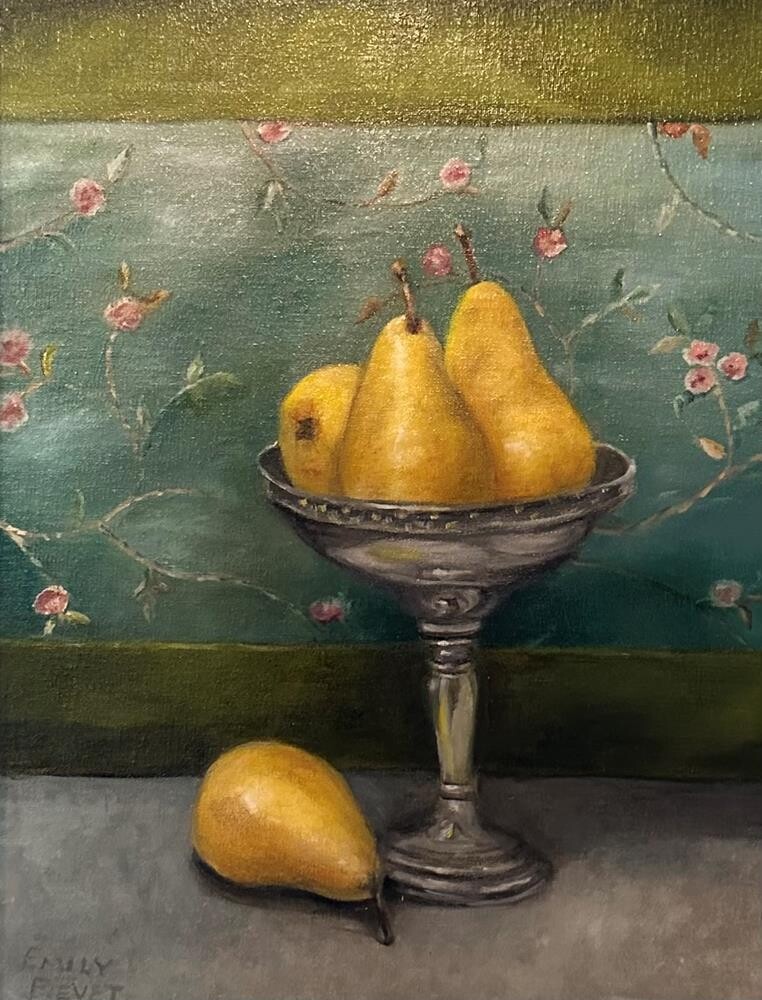 They weren’t really poison, but my husband and I learned the hard way about eating pears that weren’t yet ripe. I didn’t have much appetite for the rest of them, so I painted them instead. Ships in a silver Plein Aire frame. They weren’t really poison, but my husband and I learned the hard way about eating pears that weren’t yet ripe. I didn’t have much appetite for the rest of them, so I painted them instead. Ships in a silver Plein Aire frame. |