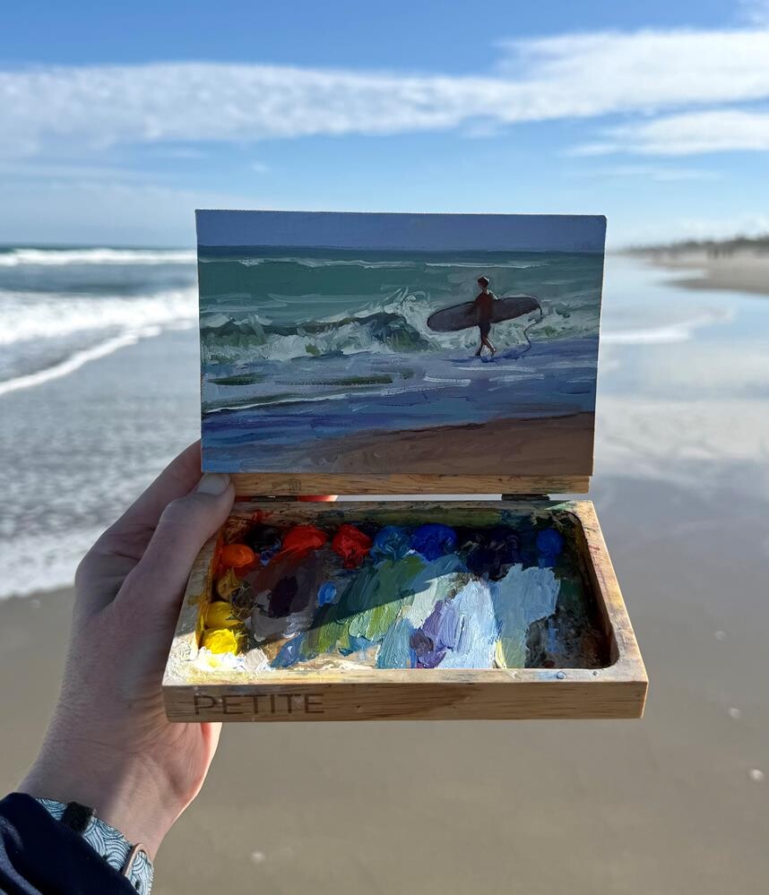 Backlit surfer. 4x6 oil on linen panel.💡🌊 Backlit surfer. 4x6 oil on linen panel.💡🌊 |