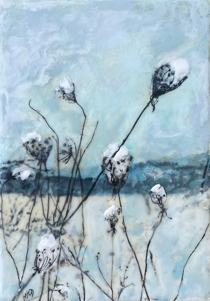 Media: The encaustics are done on encausticbord (by ampersand) which is a prepared hard board, 1/8" in thickness.