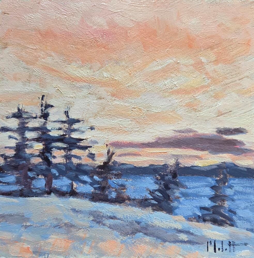 Winter Sunset. 6x6 inch oil on panel Winter Sunset. 6x6 inch oil on panel |