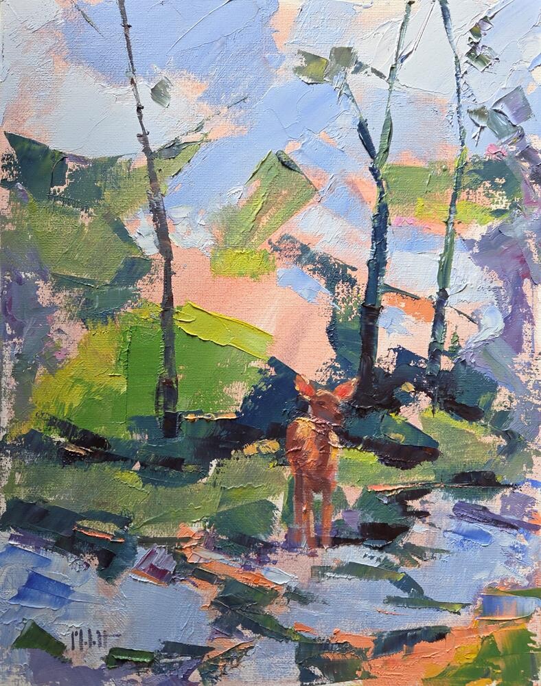 Young Deer. 11x14 inch oil on panel. Keeping it simple. Capturing the essence of the moment. This young deer is often down at the creek. Young Deer. 11x14 inch oil on panel. Keeping it simple. Capturing the essence of the moment. This young deer is often down at the creek. |