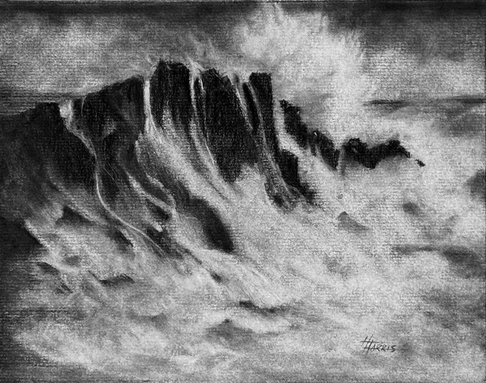 I’m pleased to share my latest charcoal drawing, “Froth” an 8 by 10-inch piece that captures the raw energy of ocean waves crashing against a rugged cliff. Working in monochrome allowed me to focus on the stark contrast between the bright foam and the dark rock, highlighting the movement and force of the sea. Through careful detail, I aimed to convey the power and unpredictability of nature in a way that feels both immediate and timeless. I hope this drawing invites you to pause and consider the strength and beauty found in moments of natural intensity.