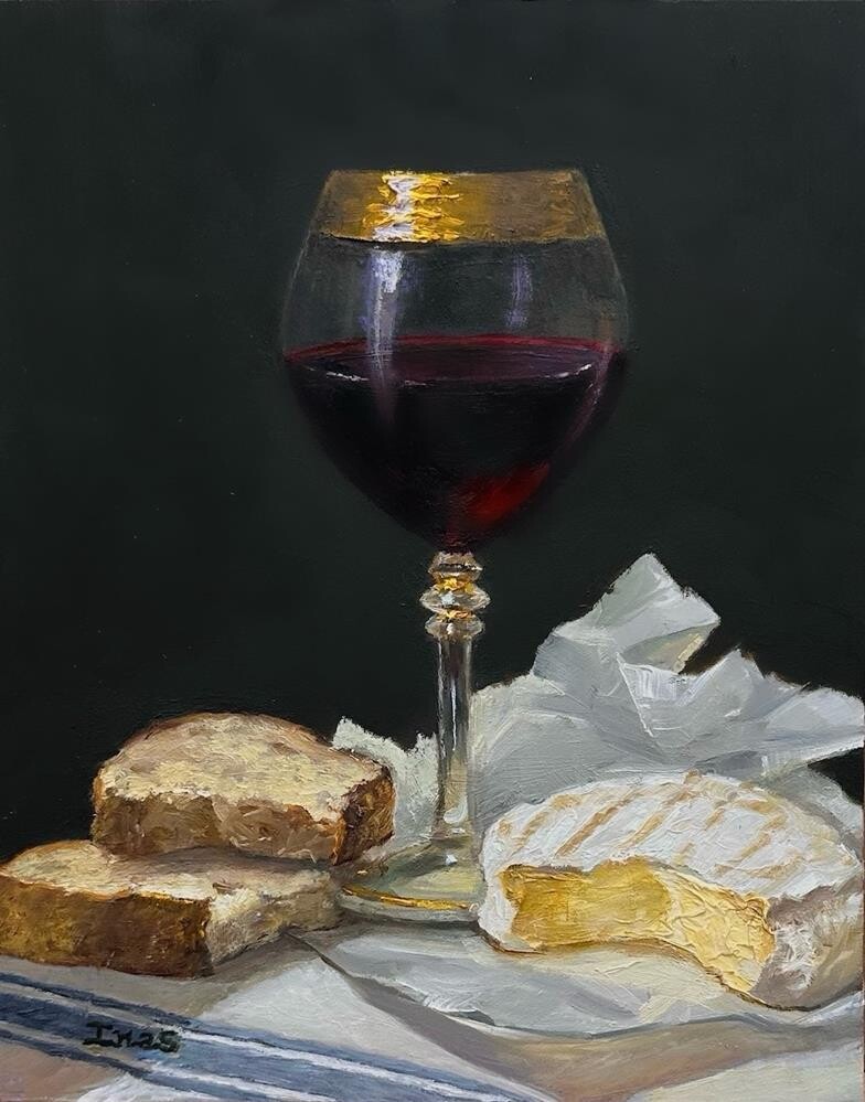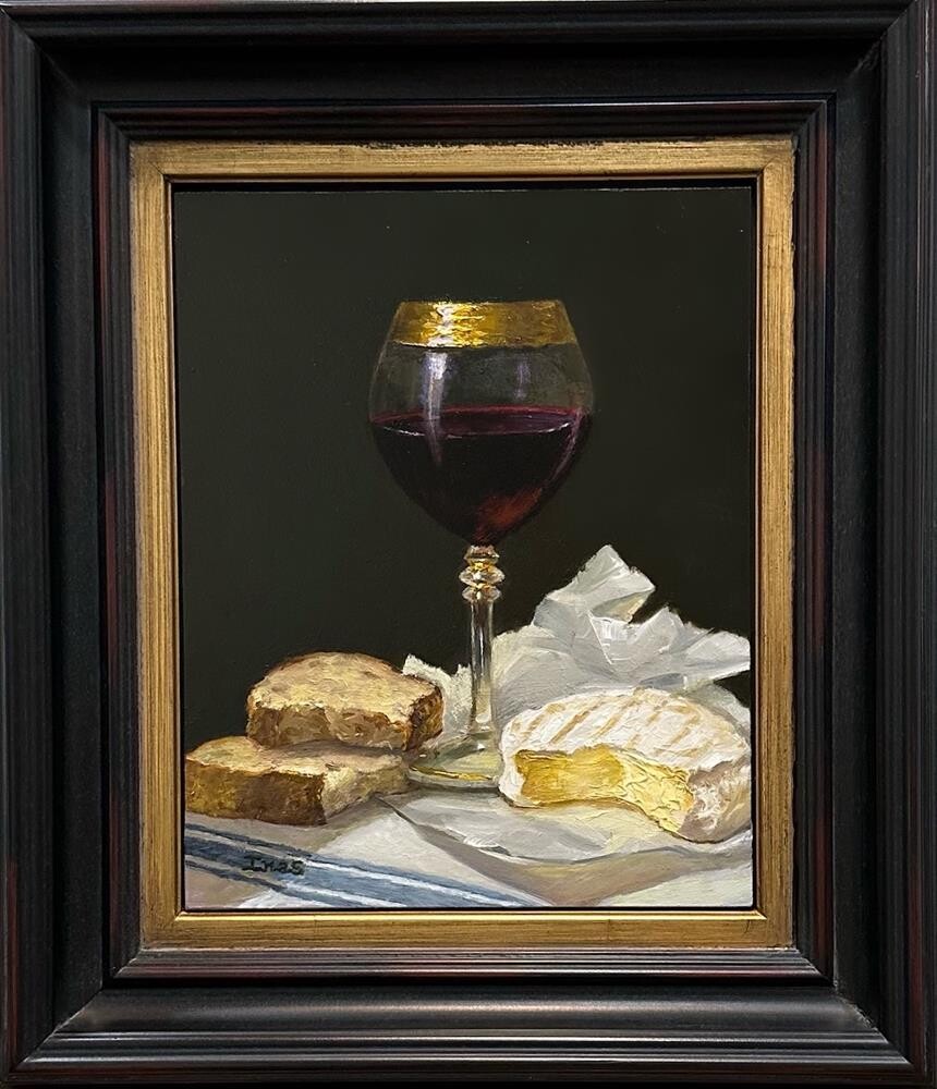 Original, one of a kind, Oil Painting on Ampersand Gessobord. Painted in my studio from a still life composition with wine, brie cheese and fresh bread. If you wish to purchase framed, please visit my Etsy store at OilsByInas.store. For any other inquiries, please email the artist. Original, one of a kind, Oil Painting on Ampersand Gessobord. Painted in my studio from a still life composition with wine, brie cheese and fresh bread. If you wish to purchase framed, please visit my Etsy store at OilsByInas.store. For any other inquiries, please email the artist. |