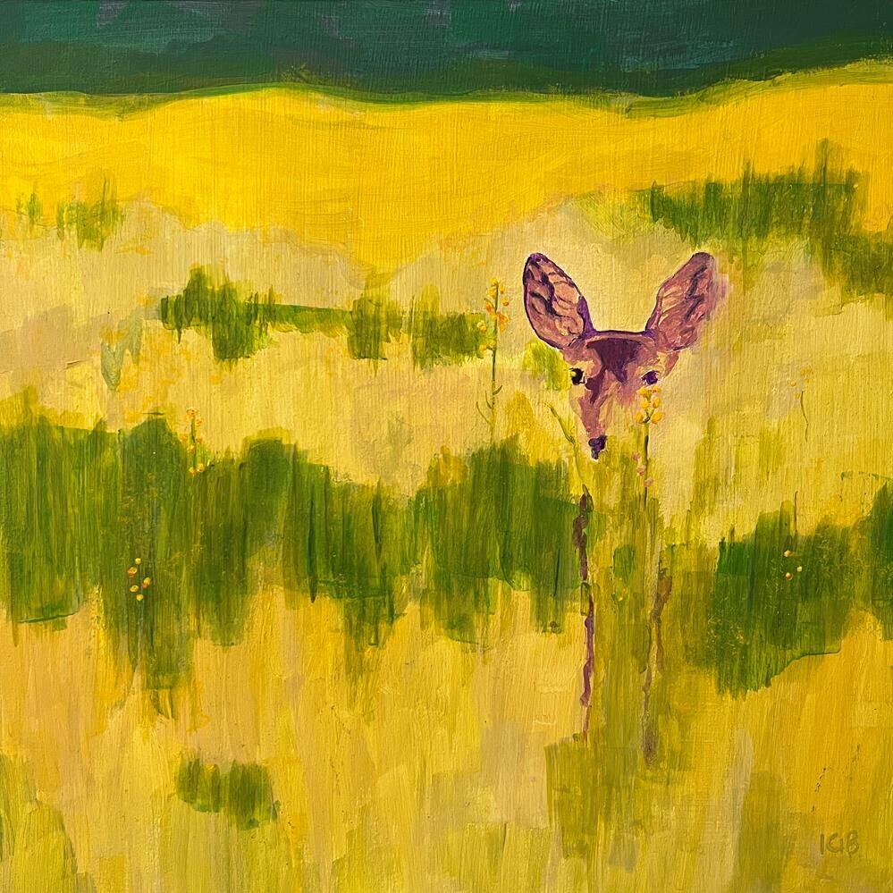 Glimpsed is the hush between heartbeats. Tall grasses in gold and green sway like a living curtain, parting just enough to reveal the inquiring face of a deer. Its gaze meets yours for a breath before it slips back into the wild--half-seen, wholly felt. This is the language of the liminal: connection without capture, recognition without possession. To see is to be seen, both fleeting.