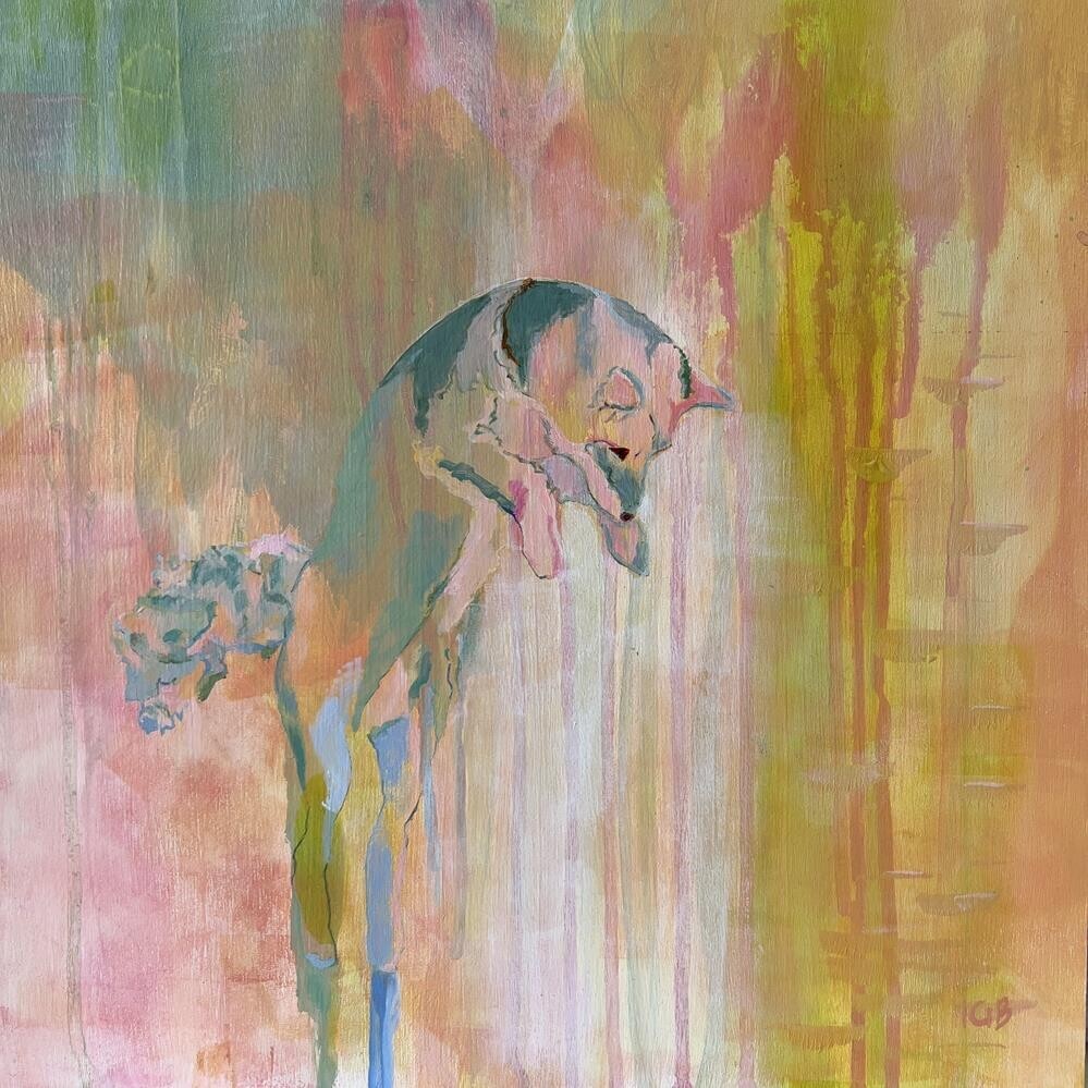 This mousing fox Presence Portal dances among abstract flowers.