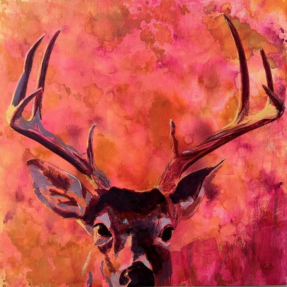 Stature is the stag as sovereign--bathed in molten gold, crowned in firelight, grounded in the heat of passion. His gaze is unflinching, his body carved from muscle and myth. Here, red is life-force and gold is birthright. This is the pulse of ancient forests and the whisper of old gods who still walk among us. To meet his eyes is to remember that you, too, are made for magnificence. What color feels like your own life-force?