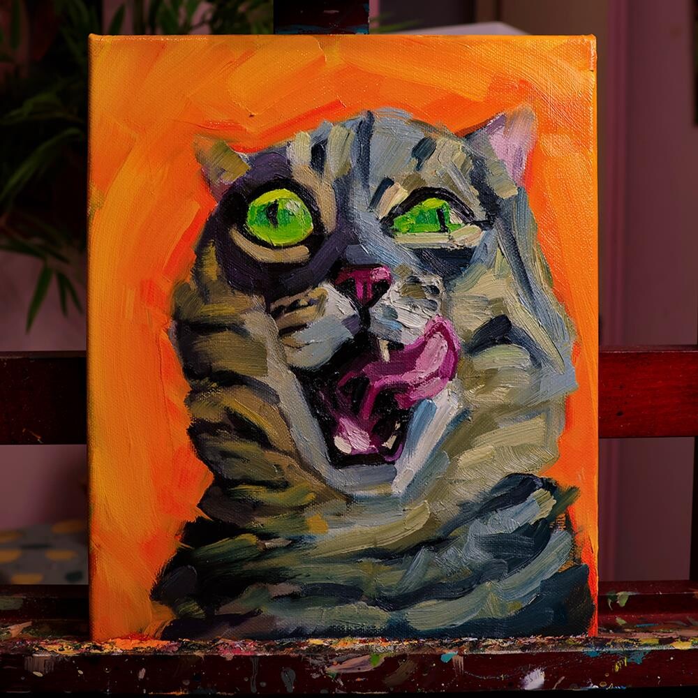📦 Shipping: Each painting is carefully packaged with protective materials and shipped from Ireland, ensuring it arrives safely and ready to hang One Crazy Kitty (Oil on canvas, 10 x 12 inch) I decided to painted this crazy cat because it captured my soul a little bit. If you are looking to spice up your life and add a bit of chaos into your life, considering purchasing this kitty.