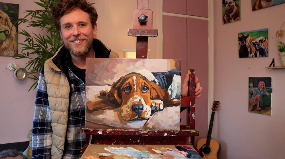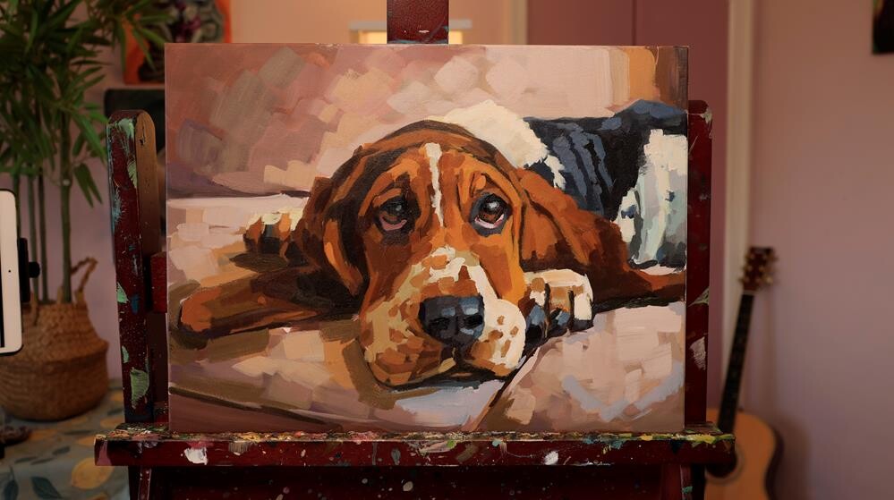 This original acrylic painting captures a classic basset hound in full rest mode — chin on the floor, eyes doing that half-awake, half-dreaming thing bassets do best. This original acrylic painting captures a classic basset hound in full rest mode — chin on the floor, eyes doing that half-awake, half-dreaming thing bassets do best. |