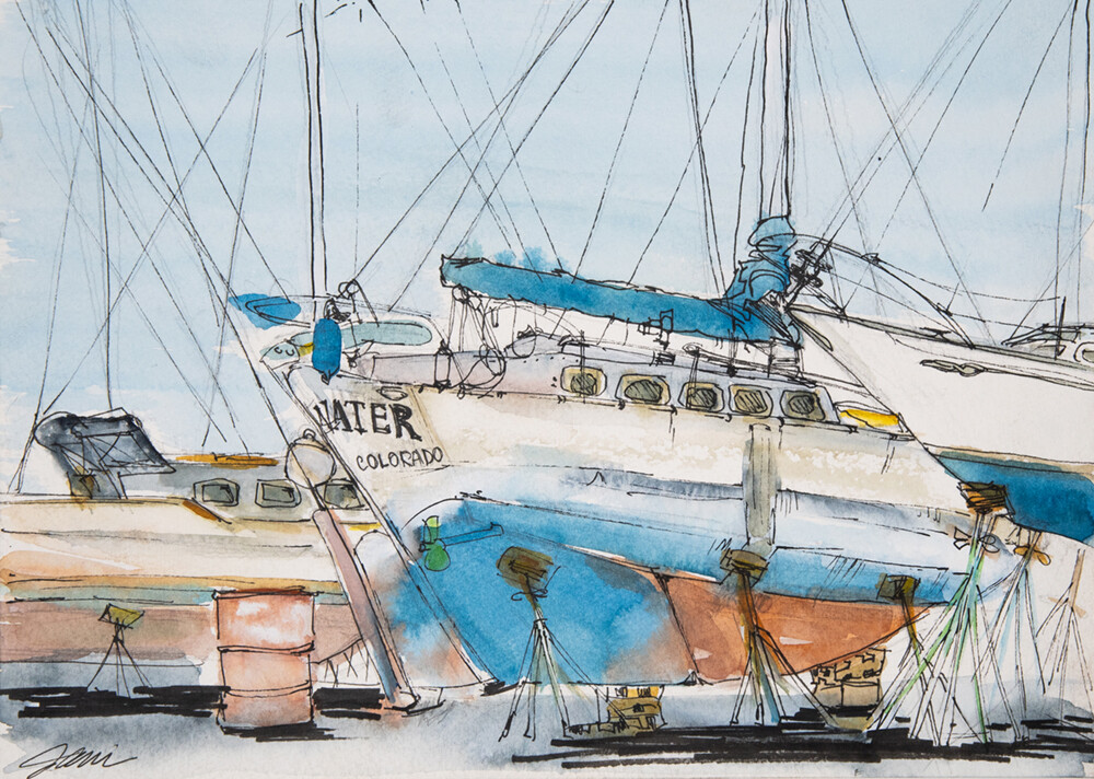 It was a perfect and peaceful morning on a warm August day when I painted this painting. I was sitting under another boat to stay out of the sun while capturing this scene. It was a perfect and peaceful morning on a warm August day when I painted this painting. I was sitting under another boat to stay out of the sun while capturing this scene. |