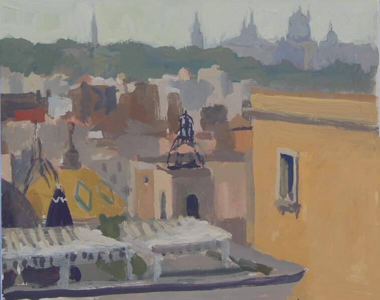 Unframed gouache. It is varnished so does not have to be displayed under glass. Painted in Barcelona from the hotel roof and touched up at home. I could have done a hundred paintings up there, with views in every direction. Unframed gouache. It is varnished so does not have to be displayed under glass. Painted in Barcelona from the hotel roof and touched up at home. I could have done a hundred paintings up there, with views in every direction. |