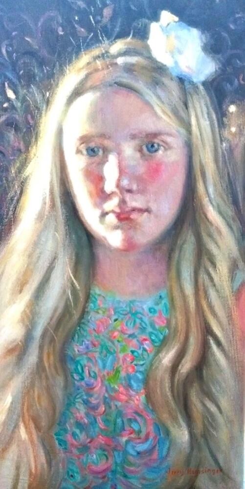 "Flower Girl" is an 20x10 oil painting on stretched canvas in the style of realism and impressionism. The light shining through the window as the sun was setting was a beautiful and strong contrast to the you girls soft features. That is what inspired me to paint it. "Flower Girl" is an 20x10 oil painting on stretched canvas in the style of realism and impressionism. The light shining through the window as the sun was setting was a beautiful and strong contrast to the you girls soft features. That is what inspired me to paint it. |