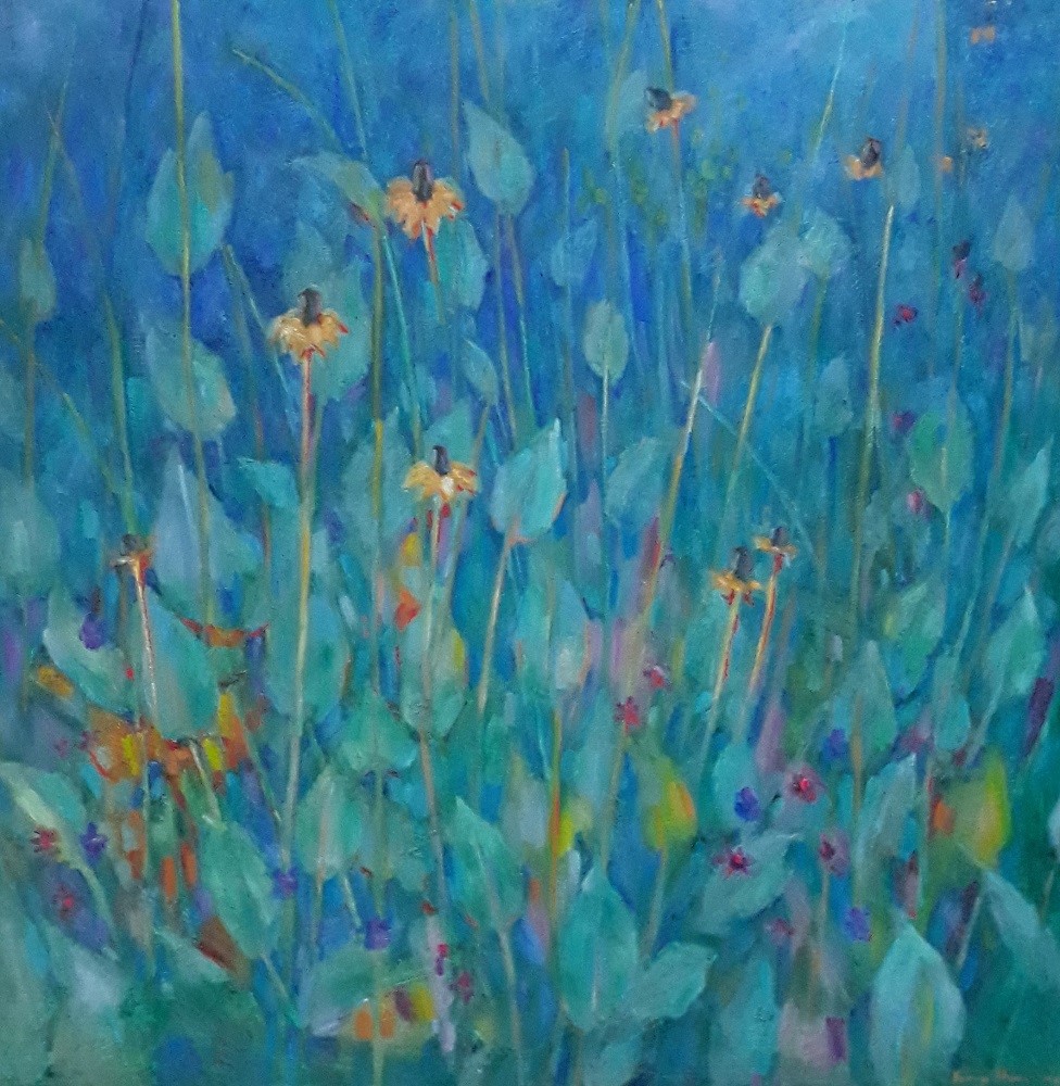 Media: floral, mixed media, 36 x36", framed under plexiglass
