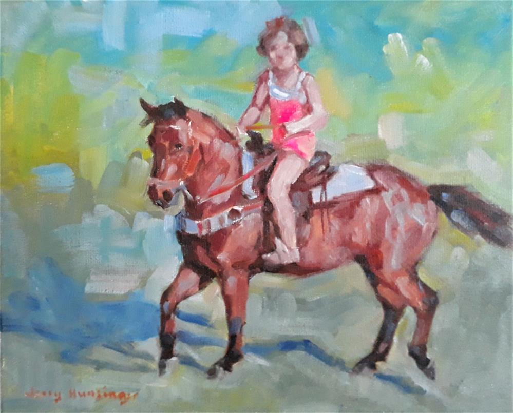 "In Control" is an 8 x 10 oil on stretched canvas unframed. This young girl was in control of her "full speed ahead only" Welsh pony. She was practicing her barrel racing and pole bending skills in tennis shoes...not recommended but nevertheless. "In Control" is an 8 x 10 oil on stretched canvas unframed. This young girl was in control of her "full speed ahead only" Welsh pony. She was practicing her barrel racing and pole bending skills in tennis shoes...not recommended but nevertheless. |