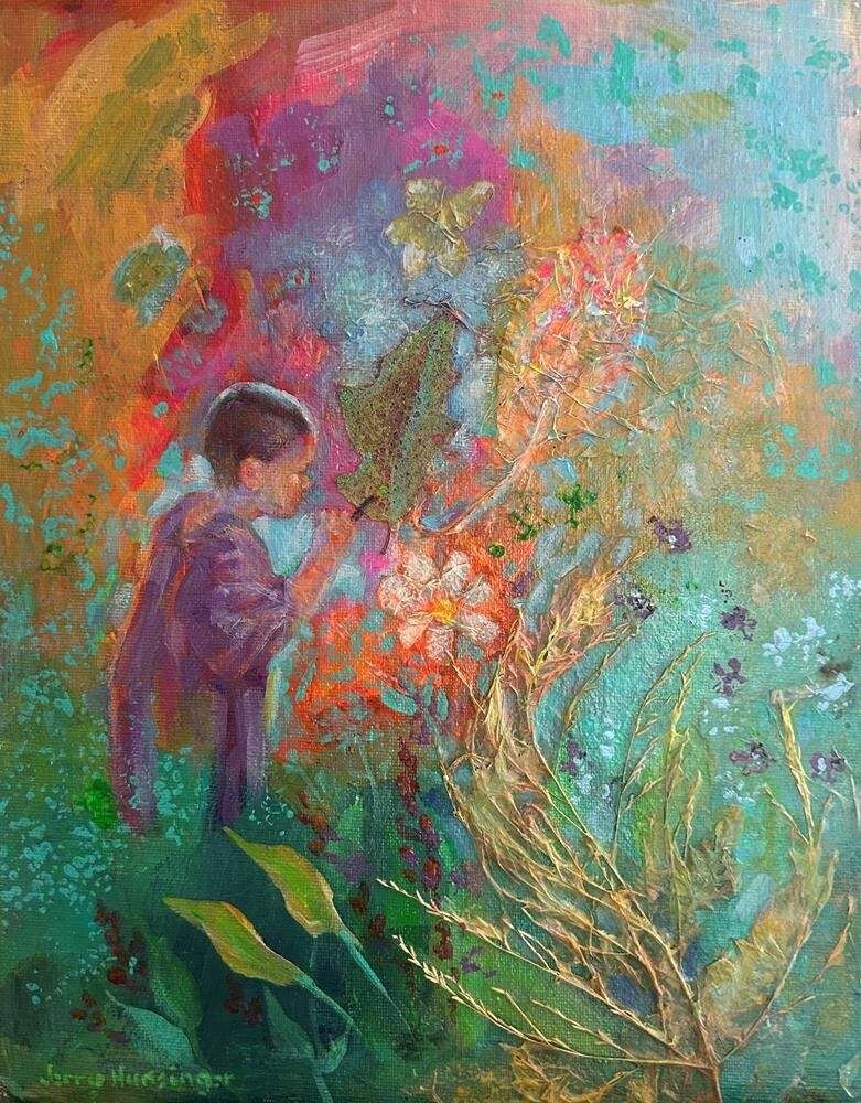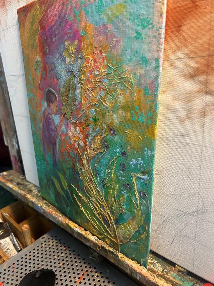 I was painting in the midst of the beautiful wildflowers and weeds which I used in the collage. The young boy is actually painting on one of the leaves. I was painting in the midst of the beautiful wildflowers and weeds which I used in the collage. The young boy is actually painting on one of the leaves. |
