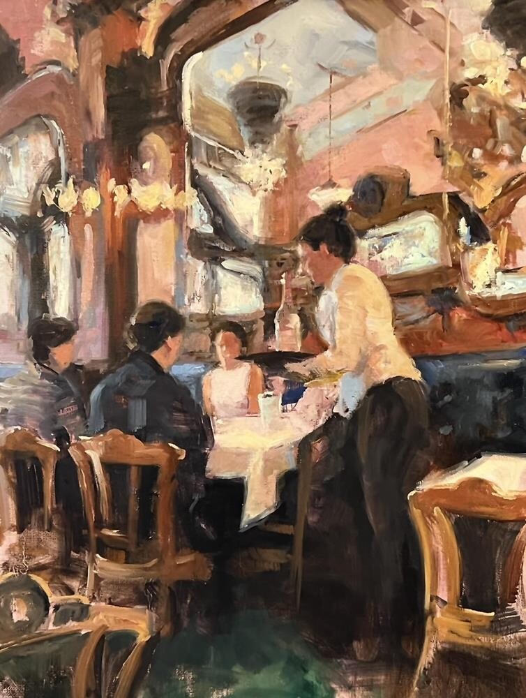 I recently completed the Camino de Santiago from Porto, Portugal to Santiago, Spain. I began the journey with a short visit to Porto, where I enjoyed the food and culture before embarking on the arduous 12-day walk. This is a view inside Majestic Cafe. The restaurant had a warm, glowing light, that I hoped to convey in this painting. I recently completed the Camino de Santiago from Porto, Portugal to Santiago, Spain. I began the journey with a short visit to Porto, where I enjoyed the food and culture before embarking on the arduous 12-day walk. This is a view inside Majestic Cafe. The restaurant had a warm, glowing light, that I hoped to convey in this painting. |