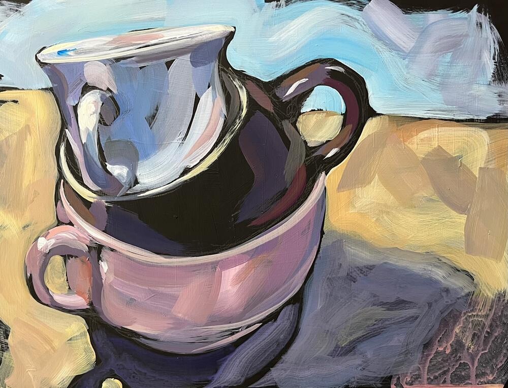 "Come Have A Cup With Me!" This was a demo painting from my last painting class, and it was a push to my students to paint a simple still life BIG! Stacking the cups does make it a little more complicated, and I am pretty happy with how it turned out! That white cup just glows and the brown middle mug is velvety dark, and the shadow worked out well too! "Come Have A Cup With Me!" This was a demo painting from my last painting class, and it was a push to my students to paint a simple still life BIG! Stacking the cups does make it a little more complicated, and I am pretty happy with how it turned out! That white cup just glows and the brown middle mug is velvety dark, and the shadow worked out well too! |