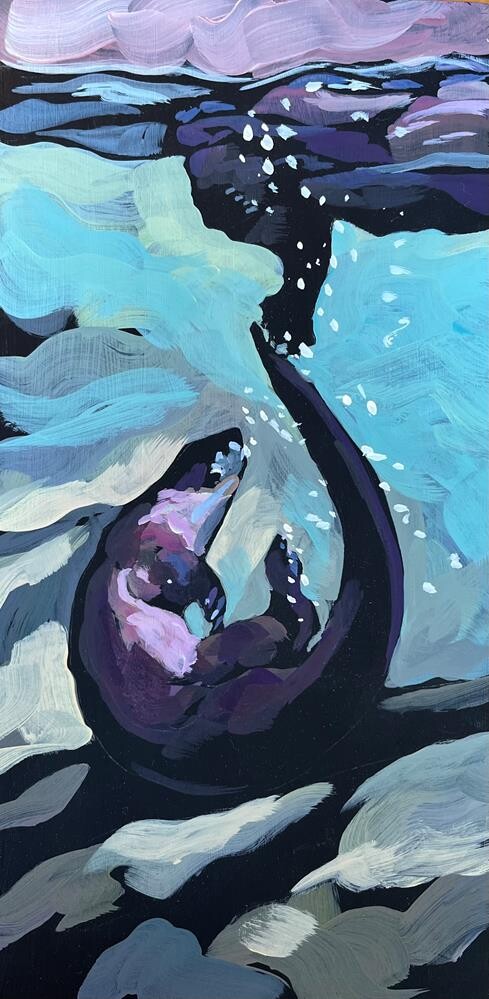 I painted this one up at Wolf Ridge with our pack of 7th graders this week- it was fun to have an audience and my act of painting made more of them willing to pull out the watercolors and paper I'd brought along. So they joined me in painting in the sunshine through the giant windows looking out at the cold blowing snow! This is a photo Duane took at the MN Zoo last April, the older otter reaching down to the younger one- I love the open paw and the muted neutrals of the water in this one! I painted this one up at Wolf Ridge with our pack of 7th graders this week- it was fun to have an audience and my act of painting made more of them willing to pull out the watercolors and paper I'd brought along. So they joined me in painting in the sunshine through the giant windows looking out at the cold blowing snow! This is a photo Duane took at the MN Zoo last April, the older otter reaching down to the younger one- I love the open paw and the muted neutrals of the water in this one! |