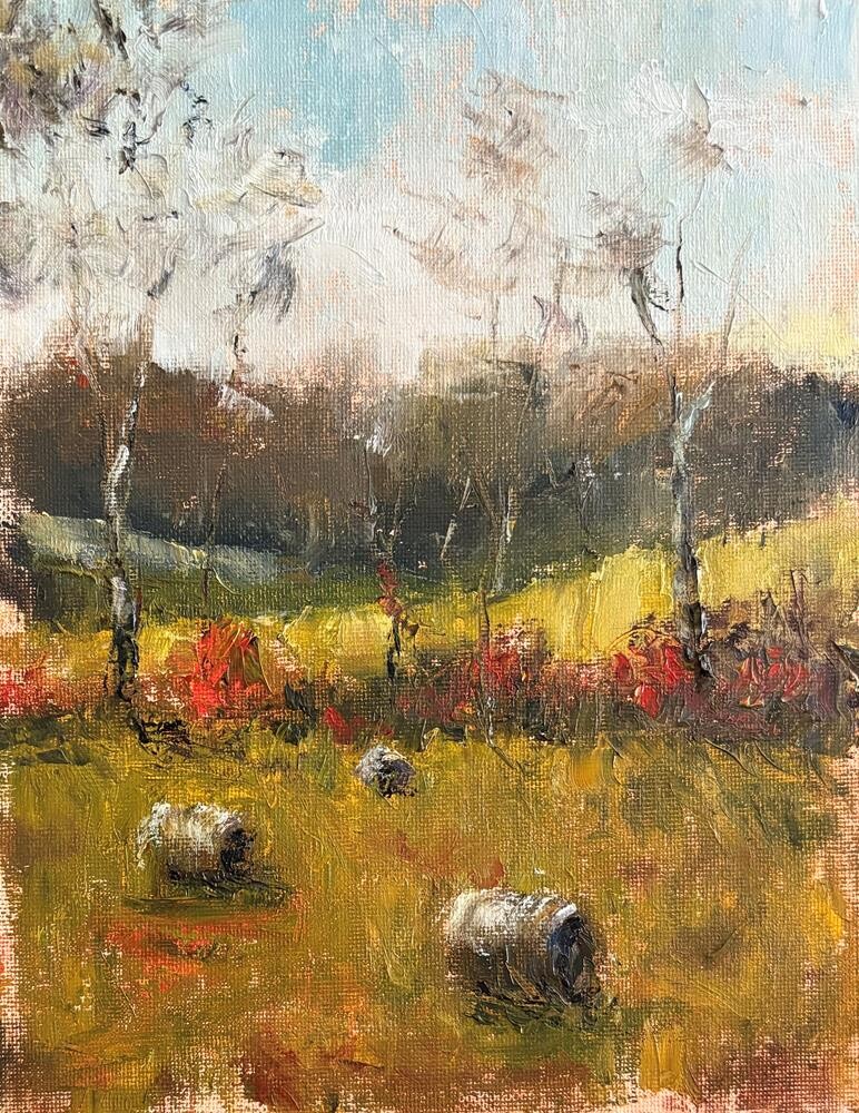 I forgot to pack my brushes for this plein air outing! Rather than waste a beautiful day, I embraced the moment and used bits of a torn up business card to apply paint to the canvas. It ended up being a wonderful experiment in mark making, and I was happy with the results. I forgot to pack my brushes for this plein air outing! Rather than waste a beautiful day, I embraced the moment and used bits of a torn up business card to apply paint to the canvas. It ended up being a wonderful experiment in mark making, and I was happy with the results. |