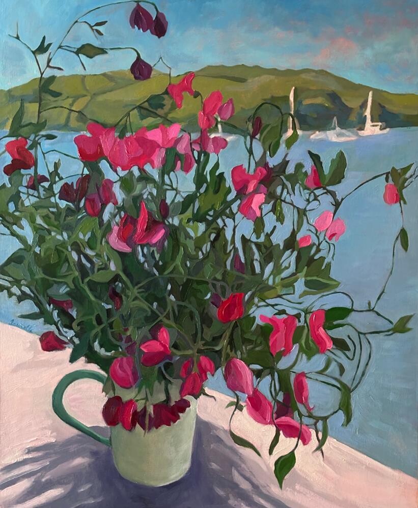 The first time I arrived in Spain it was via train from southern France. I had been hitchhiking through Europe, and my worried mother sent an express pass for train travel. I am forever grateful. The tracks ran along the northeastern coastline of the country and from the window I could see dazzling aquamarine waters, secret coves, picturesque villages, mountains reaching the coast. I continue to be enamored. The Costa Brava is a magnet for my weekend forays and an inspiration for this painting where I imagined a bouquet of sweet peas near the sea and sailboats in the distance. “Art is unquestionably one of the purest and highest elements in human happiness. It trains the mind through the eye, and the eye through the mind. As the sun colors flowers, so does art color life.” John Lubbock in The Pleasures of Life This is approximately 29x24 inches. The first time I arrived in Spain it was via train from southern France. I had been hitchhiking through Europe, and my worried mother sent an express pass for train travel. I am forever grateful. The tracks ran along the northeastern coastline of the country and from the window I could see dazzling aquamarine waters, secret coves, picturesque villages, mountains reaching the coast. I continue to be enamored. The Costa Brava is a magnet for my weekend forays and an inspiration for this painting where I imagined a bouquet of sweet peas near the sea and sailboats in the distance. “Art is unquestionably one of the purest and highest elements in human happiness. It trains the mind through the eye, and the eye through the mind. As the sun colors flowers, so does art color life.” John Lubbock in The Pleasures of Life This is approximately 29x24 inches. |