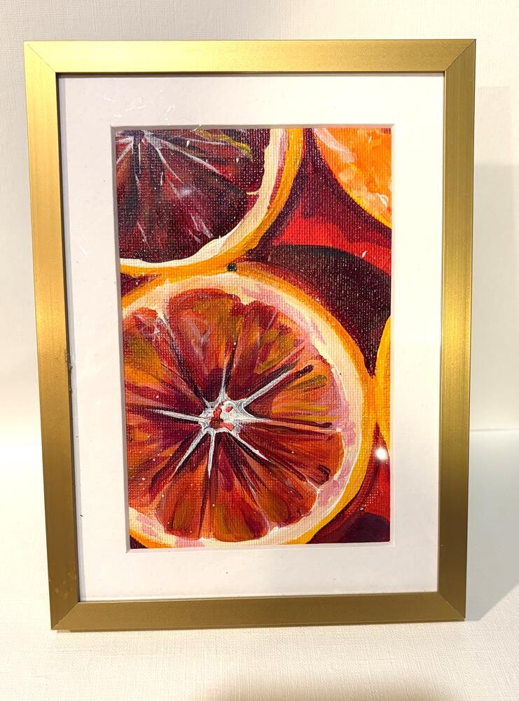 Artwork measures 4" x 5.5", frame measures 6" x 8". Beautiful, recycled/upcycled gold frame with glass. Artwork measures 4" x 5.5", frame measures 6" x 8". Beautiful, recycled/upcycled gold frame with glass. |