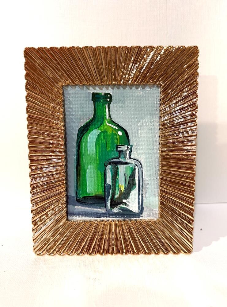 Artwork measures 2.25" x 3.25", frame measures 4" x 5". Beautiful art-deco themed frame in gold, shiny and classic. Framed without glass. Artwork measures 2.25" x 3.25", frame measures 4" x 5". Beautiful art-deco themed frame in gold, shiny and classic. Framed without glass. |