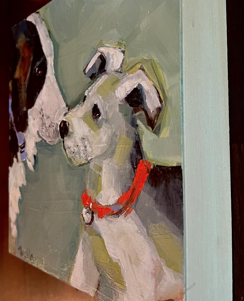 This was inspired by a photo my daughter took at the dog park. I used some artist license ðŸ¤. i am always amazed at how dogs behave and their body language. This has 2 inch wide edges (see second photo). The edges are a natural wood, not the greenish that it appears in the photo. No framing needed. It can hang as is, or sit on a shelf. This was inspired by a photo my daughter took at the dog park. I used some artist license ðŸ¤. i am always amazed at how dogs behave and their body language. This has 2 inch wide edges (see second photo). The edges are a natural wood, not the greenish that it appears in the photo. No framing needed. It can hang as is, or sit on a shelf. |
