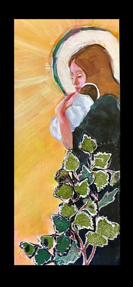 I have been creating a series of angels and spiritual beings, and this is the forth up. She is painted (and collaged with fabric!) on a 14x6 cradled board and has 1 1/2” sides which are left in the natural wood state. They’re sealed and protected. No framing needed . It is wired for hanging, but can also be displayed sitting on a shelf, with or without an easel. Scroll to the second photo to see the current group together. These would make beautiful Christmas gifts, or for anyone, anytime, who loves mothers, babies, angels, and Jesus! I have been creating a series of angels and spiritual beings, and this is the forth up. She is painted (and collaged with fabric!) on a 14x6 cradled board and has 1 1/2” sides which are left in the natural wood state. They’re sealed and protected. No framing needed . It is wired for hanging, but can also be displayed sitting on a shelf, with or without an easel. Scroll to the second photo to see the current group together. These would make beautiful Christmas gifts, or for anyone, anytime, who loves mothers, babies, angels, and Jesus! |